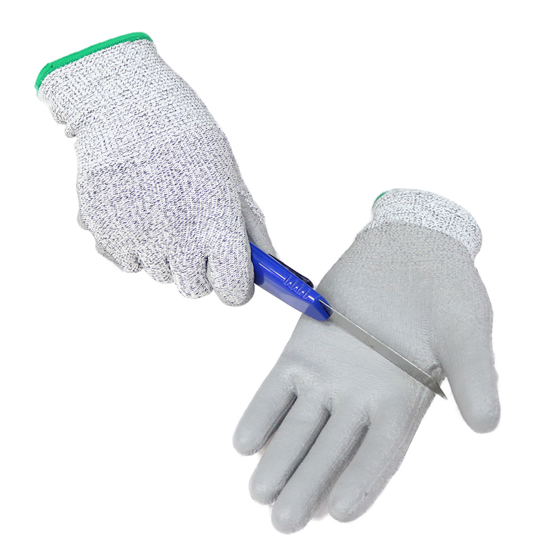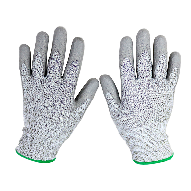 CE EN 388 grey PU coated anti-cut safety gloves level 5