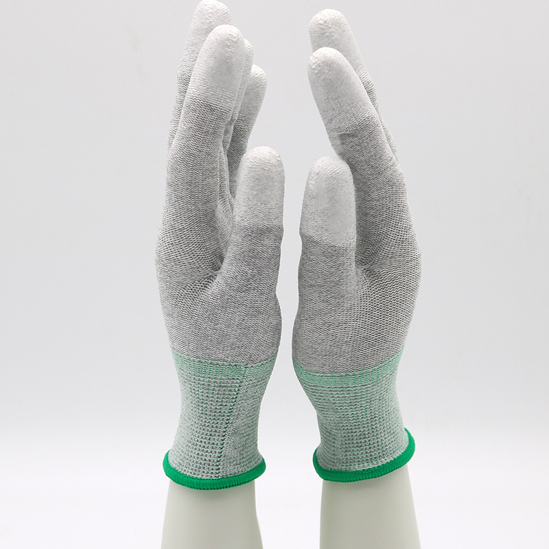 Feature: | – sharing with users the most flexibility in fingertips – Made of anti-static continuous filament, carbon conductive fiber (Carbon Yarn). – Breathable and reduces clamminess – Durable PU coated on the fingertips areas to provide better grip & eliminates fingerprints – Excellent for handling/assembling small parts – Surface resistivity: 106Ω~108Ω – High tactility, dexterity and flexibility – Ideal for use in any environments where static charge is a concern |